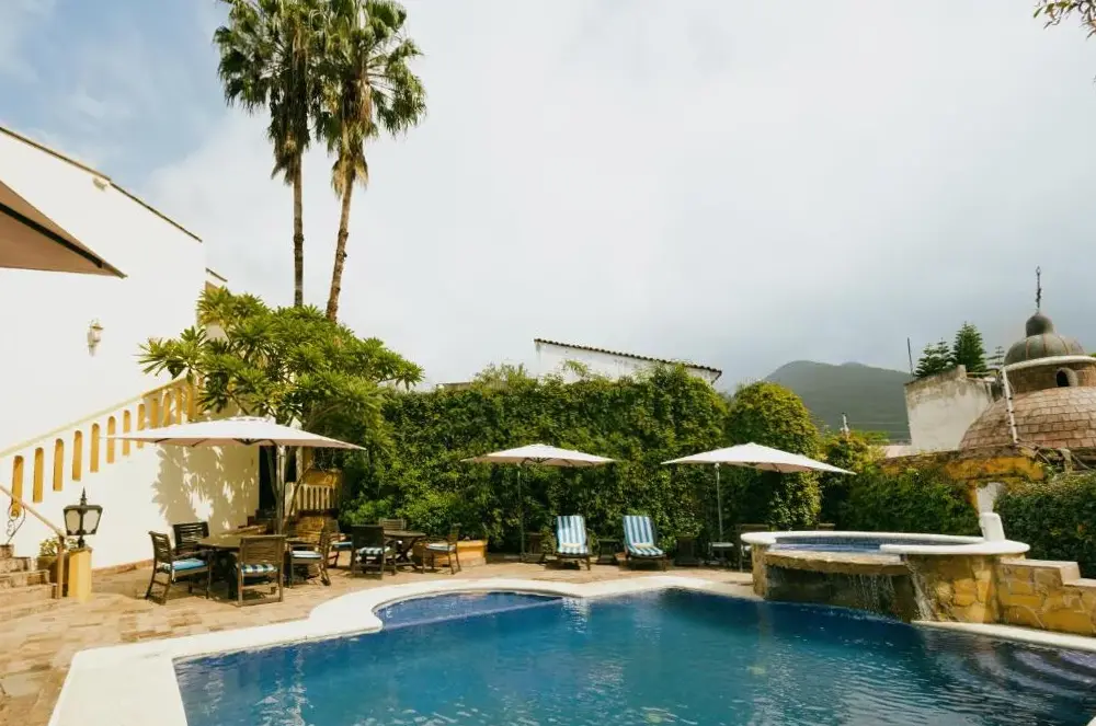 Hotel Hacienda Los Laureles se encuentra ubicado en Hidalgo 21, San Felipe del Agua, 68020 Oaxaca de Juárez, México. Este establecimiento ofrece una amplia gama de servicios para garantizar una estancia cómoda y placentera. Entre las instalaciones destacan la piscina al aire libre, el bar, el restaurante y el desayuno incluido. Además, cuenta con habitaciones familiares y espacios no fumadores. El hotel también proporciona transporte desde el Aeropuerto Internacional de Oaxaca, situado a 10 km de distancia. Cerca del alojamiento hay varios puntos interesantes como CASCADAS DE LLANO GRANDE a 4.6 km, Monte Albán a 9 km y Parque ecoturista de Huayapam a 6 km. También encontrará opciones gastronómicas cercanas como Mónica Restaurante Indu a solo 200 metros y Té DOBA a 50 metros.